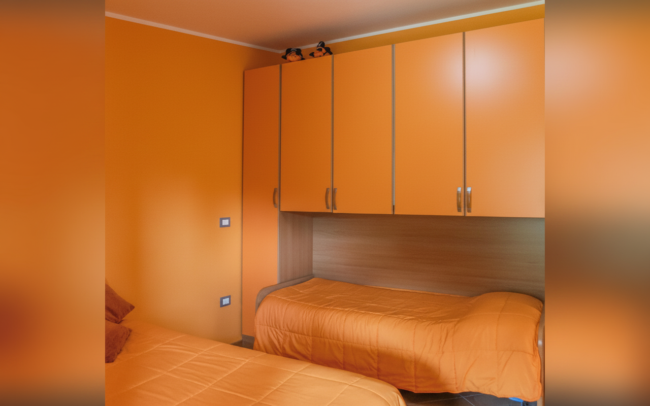 Appartamento indipendente sviluppato su due piani, ideale per famiglie o gruppi. Al piano terra si trova un ampio salone con TV e cucina completa, mentre al primo piano sono presenti una camera matrimoniale, una camera con due letti singoli e un bagno. Completa la soluzione un terrazzo perfetto per rilassarsi all’aperto.